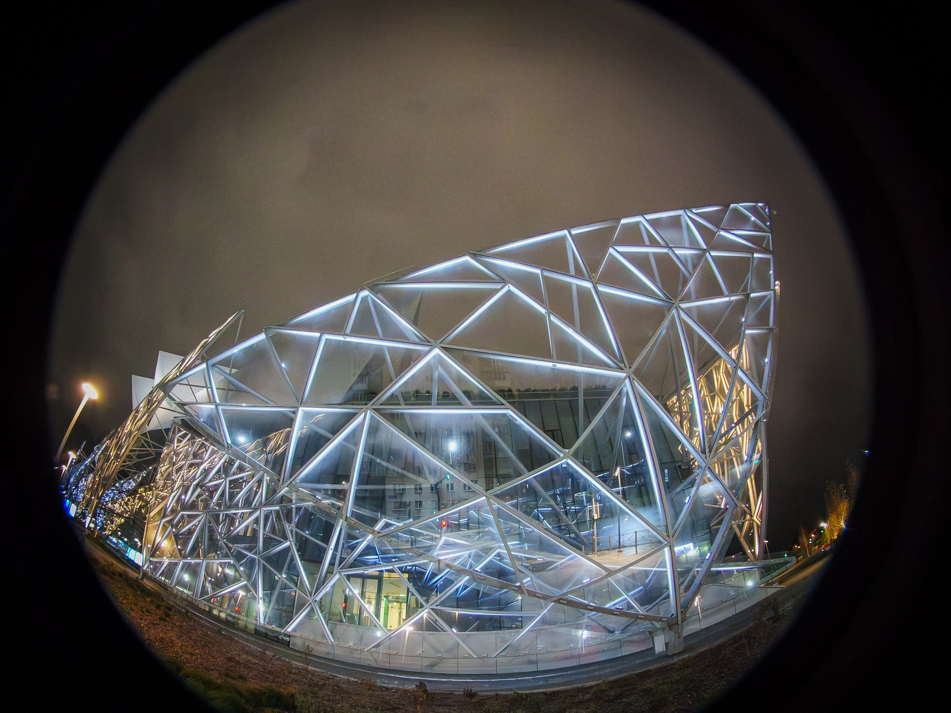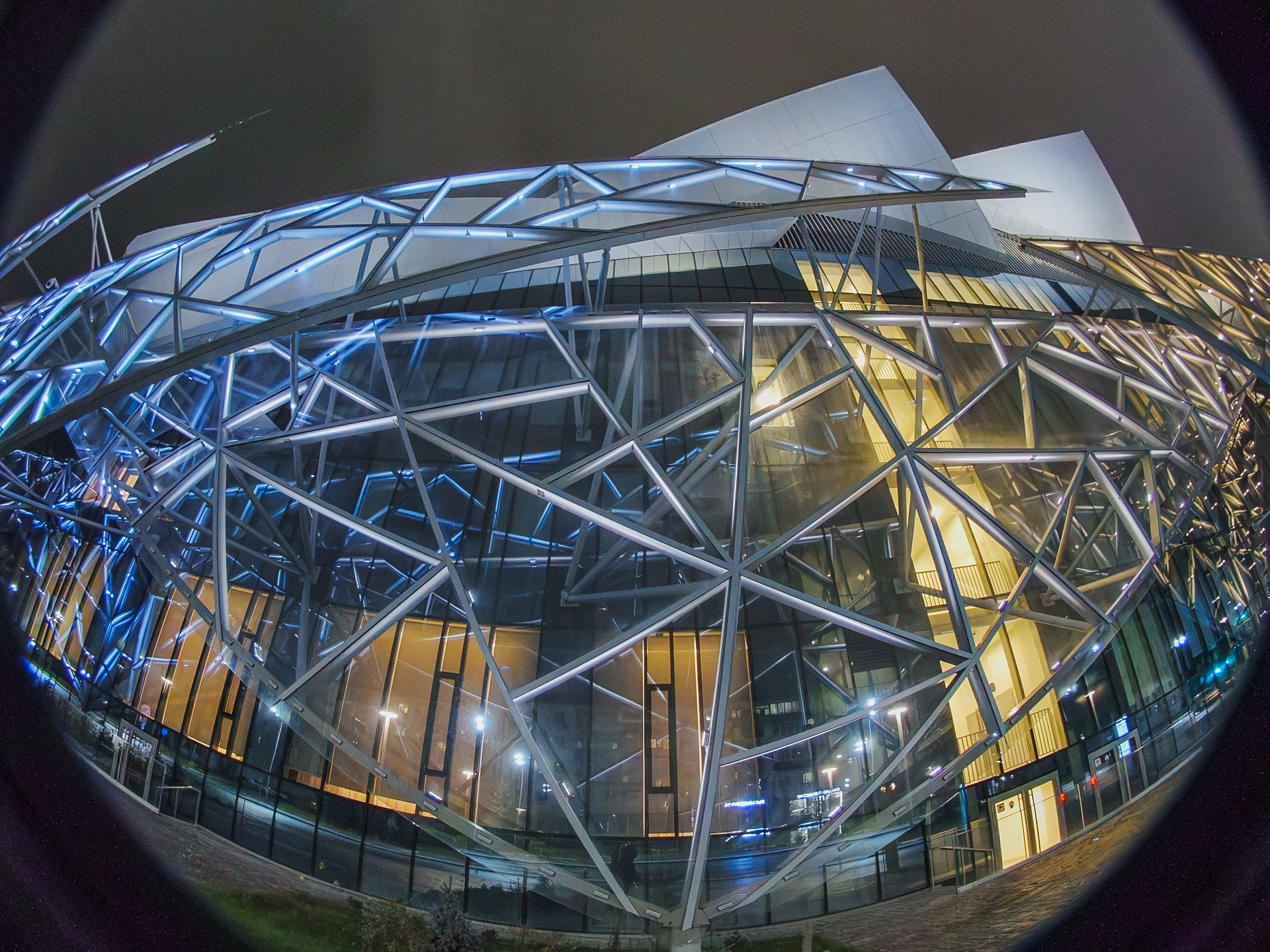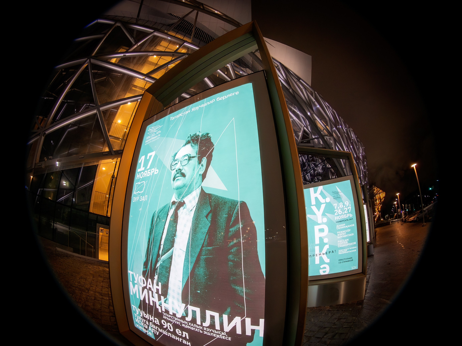 Брал в прокате фишай обектив по работе, когда ночью возваращался домой решил заодно еще что-то поснимать. Под руку попался театр Камала)
